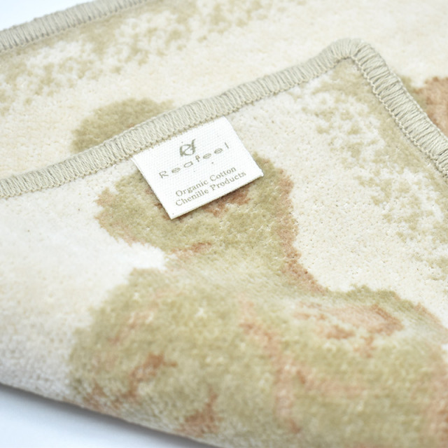 【Reafeel(レアフィール)】 「レアフィール・オーガニックコットン」は貴重なオーガニックコットンを使った日本製シェニール織のブランドです。有機農地で育てた、人と環境にやさしいオーガニックコットン。大地の恵みや太陽のエネルギーをたっぷり吸収した綿花の魅力をそのまま活かし、自然のままの色で織り上げました。 【日本製】 日本のからみ織技法の「紗」の織技法を取り入れて 独自に発展した日本製の再織物が「アーンジョー」の扱うシェニール織物です。 【シェニール織(再織り)】 表と裏に美しく絵柄が出るのが特徴の織物です。織り上がると絵柄が現れるようにデザインされたストライプ状の織物を一度織り、その織物をタテ方向に裁断し、これをヨコ糸として、絵柄を合わせながら再度織り上げます。2度織る製法から「再織り(さいおり)」と呼ばれています。 【和歌山県高野口】 シェニール織は18世紀末にスコットランドで生まれた織物で、 日本には明治初期に伝わり、明治10年頃には和歌山県で作られ始めたとされています。 |